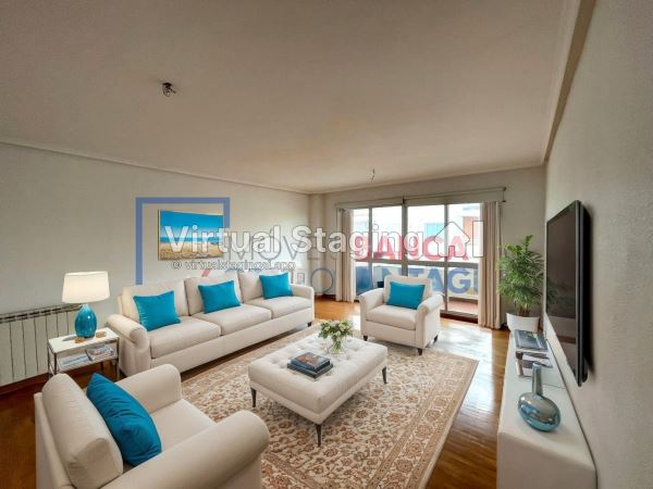 A habitação fica localizada no 3º andar de um prédio com elevador e é composta por hall de entrada, sala muito espaçosa com varanda, 3 quartos, sendo um suite com casa-de-banho completa e roupeiro embutido, 1 casa-de-banho completa, cozinha semi-equipada com sala de máquinas e caldeira a gás para aquecimento central, porta de segurança e vídeo porteiro.