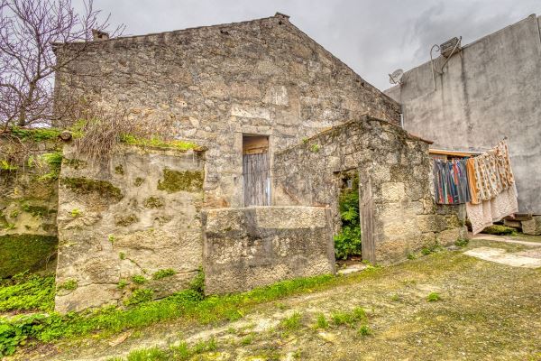 Dois prédios implantados num terreno com a área de 1.026 mts2 Composto por duas casas para reconstrução Casa 1 tem uma área bruta de construção de 135 mts2 e composta por cave e andar com 4 divisões Casa 2 tem uma área bruta de construção 140 mts2, composta por R/C com uma divisão e andar com uma divisão, tem ainda um subterrâneo com uma loja.