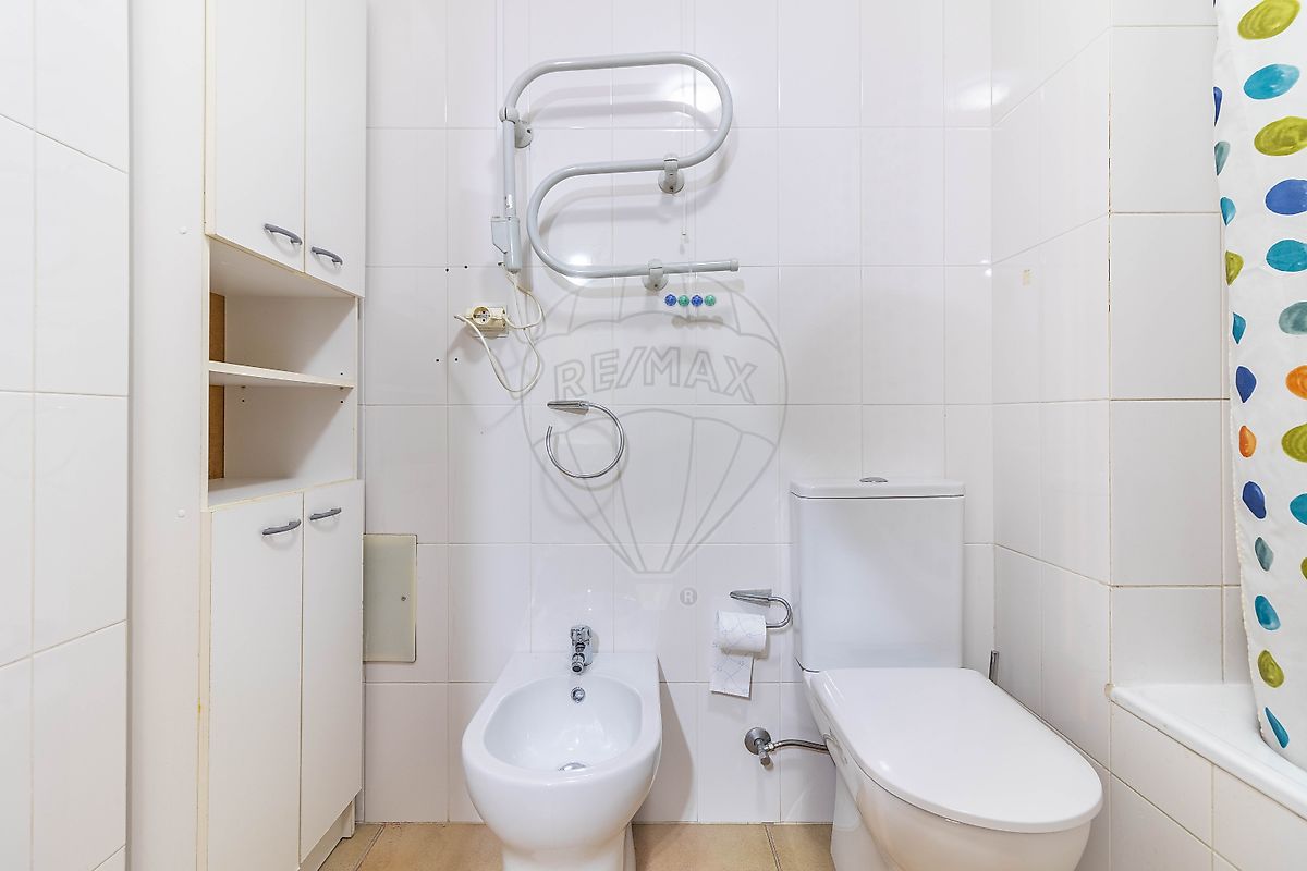 O hall de entrada distribui para as restantes divisões: wc completo com banheira, quarto com dois roupeiros embutidos, sala comum separada da cozinha com porta de correr em madeira e com acesso a uma varanda de excelentes dimensões, onde se encontra a lavandaria.
