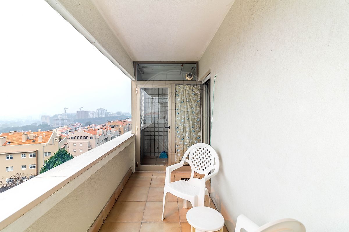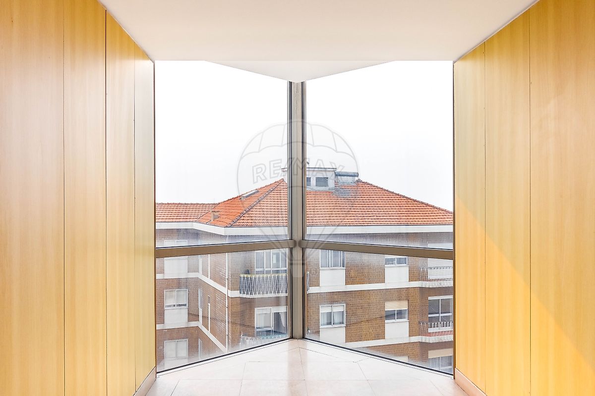 O apartamento fica situado num 5º piso, voltado a poente, com vistas de cidade e mar totalmente desafogadas.