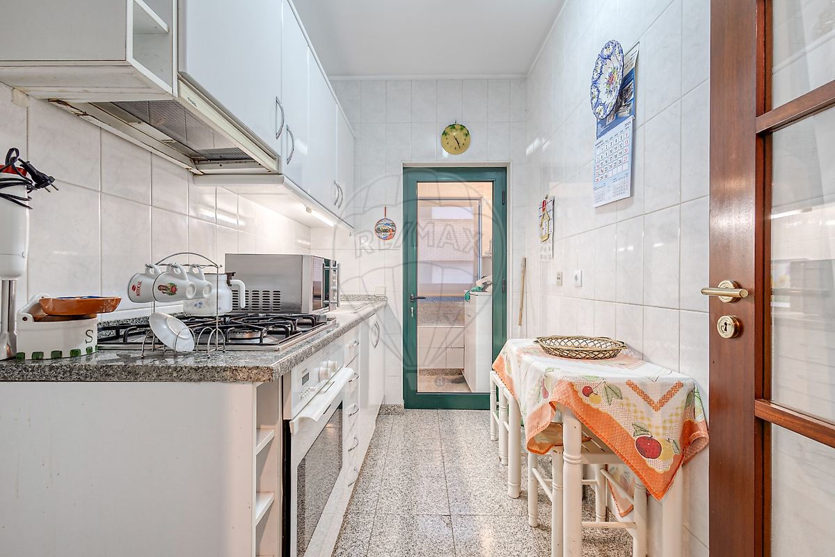 cozinha com acesso a marquise/lavandaria, um quarto e casa de banho completa.