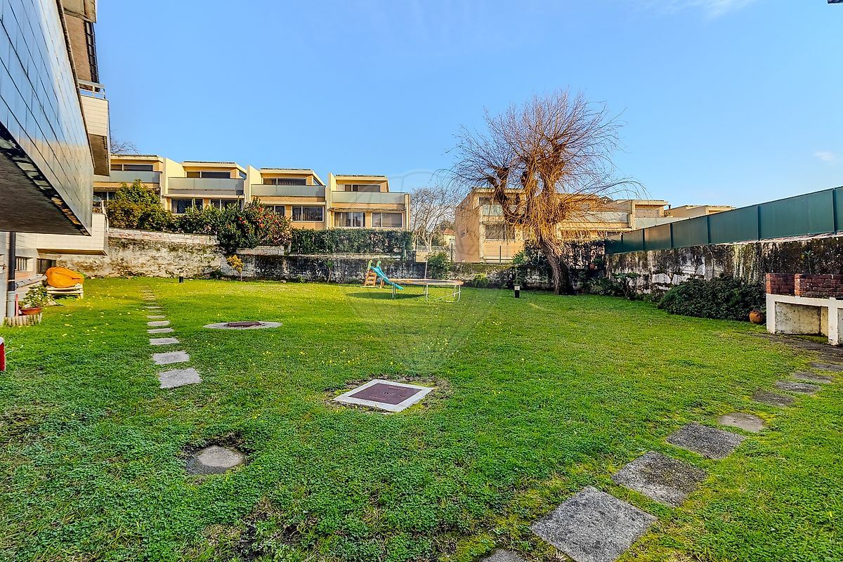 O edifício possui um jardim exterior bem cuidado, proporcionando um ambiente calmo e agradável.