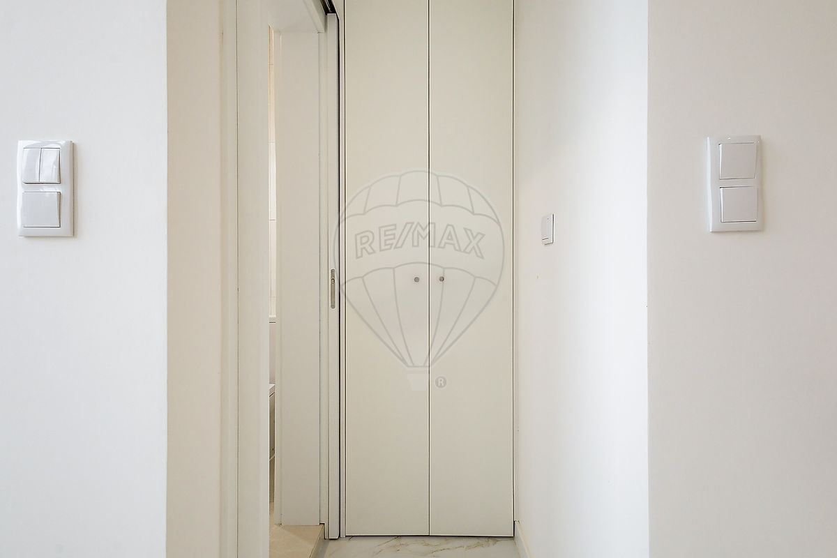 Acabado de ser totalmente remodelado, este apartamento T2 com 77 m2 de área bruta privativa tem dois quartos, um dos quais com um varandim, cozinha aberta com sala, zona técnica/arrumos e uma casa de banho com base de duche e janela. A cozinha e a sala têm uma vista desafogada a poente.