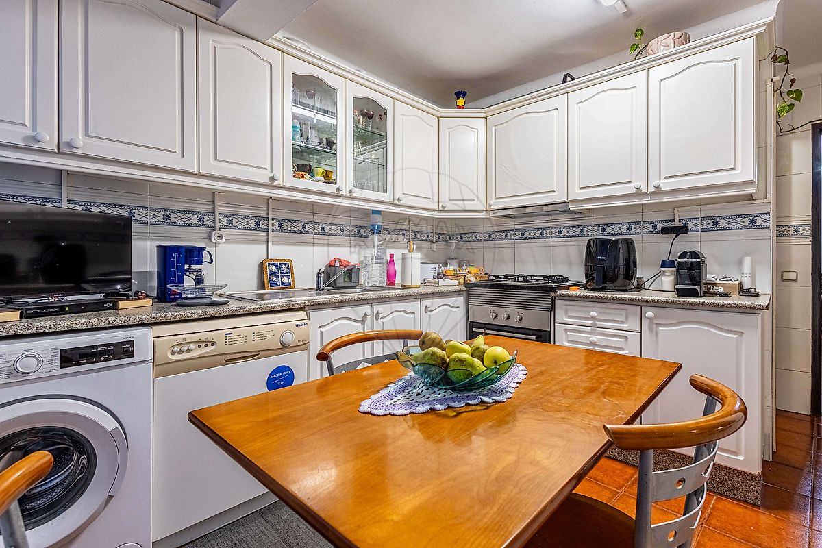 A cozinha, com um grande janelão que garante ótima luminosidade, apresenta móveis em excelente estado de conservação.