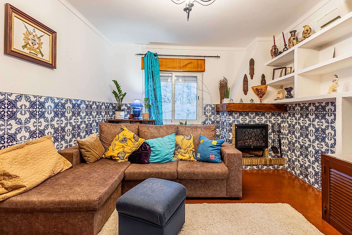 A sala de estar, ampla e luminosa, conta com lareira, proporcionando um ambiente acolhedor para momentos de convívio ou descanso.