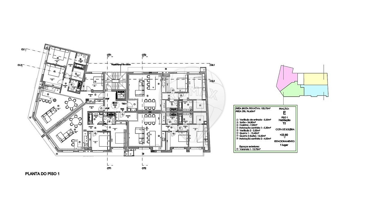 Este apartamento oferece ainda estacionamento para uma viatura na cave e a possibilidade de efetuar carregamento elétrico.