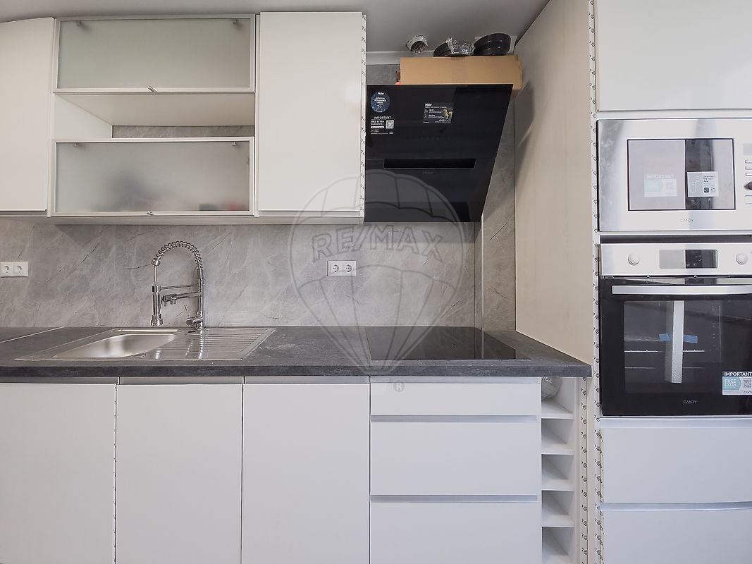 · Cozinha totalmente nova, equipada com placa vitrocerâmica, forno encastrado, micro ondas encastrado, combinado americano, máquina de lavar roupa, máquina de lavar loiça e exaustor
