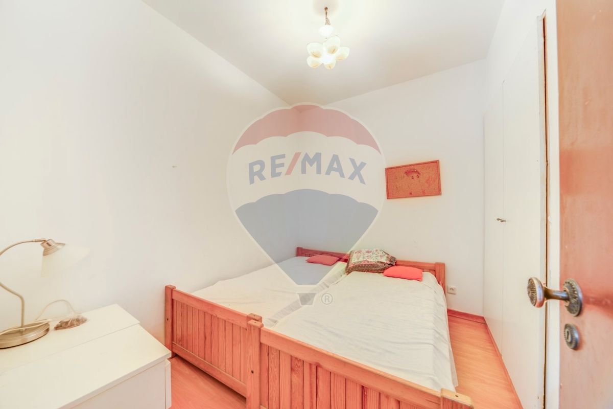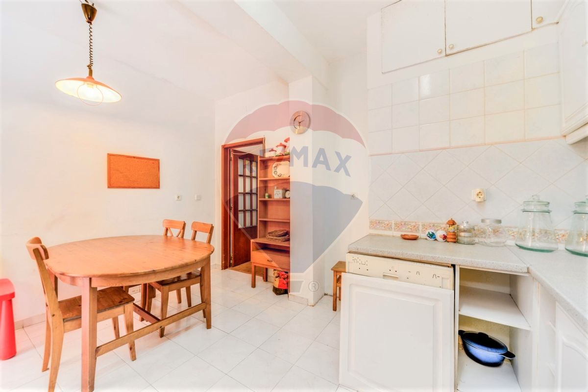 Apartamento, com 80 m2, distribuídos por dois quartos, sala, cozinha com acesso ao logradouro, com 11m2 e casa de banho.