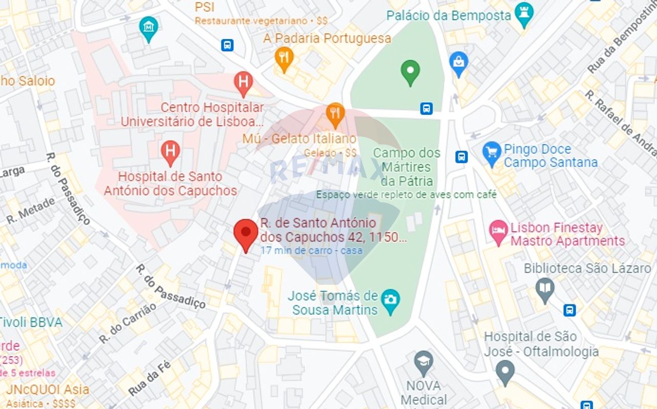 In the central area of Lisbon, in the parish of Arroios, next to Hospital dos Capuchos, a few minutes from Avenida Metro Station and in an area served by several buses, this building is close to Campo de Santana, Campo Mártires da Pátria, São José Hospital and Institute of Legal Medicine, supermarkets, pharmacies, schools, restaurants, bakeries. among other types of trade and services.