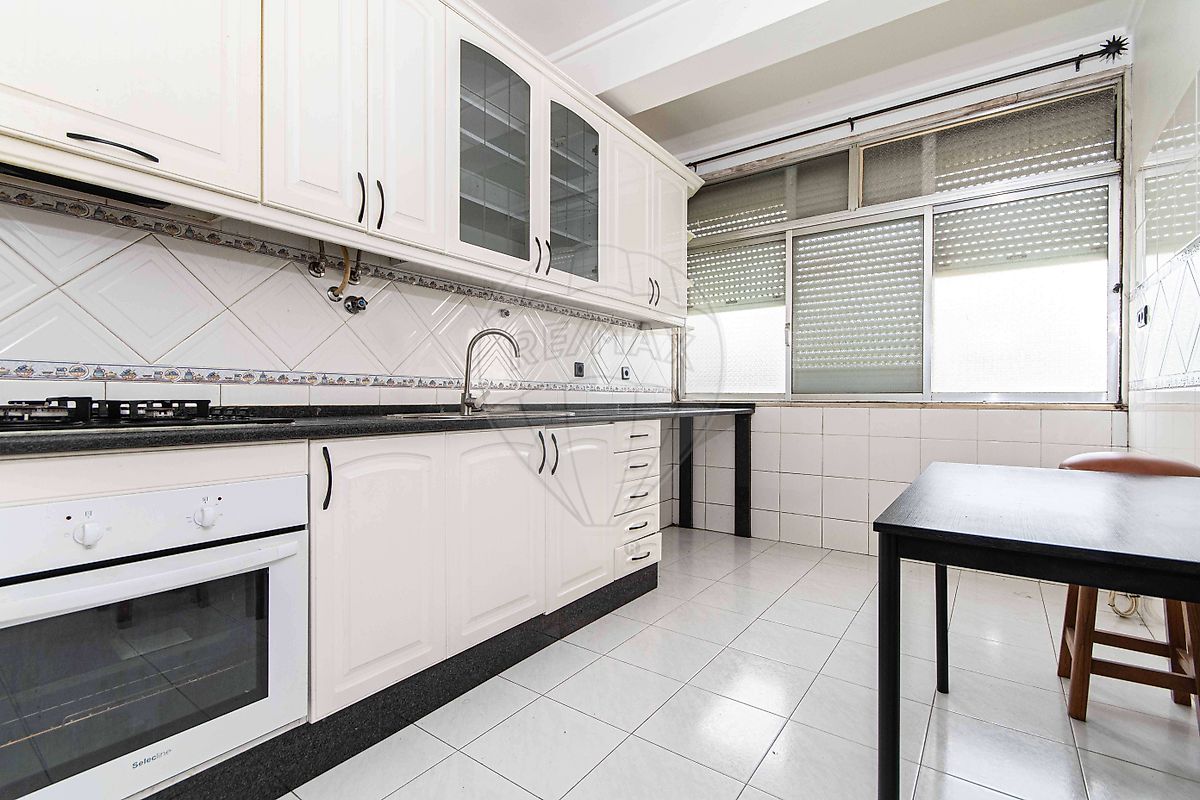 A cozinha está equipada com esquentador, exaustor, placa e forno, e conta ainda com despensa, ideal para organização.