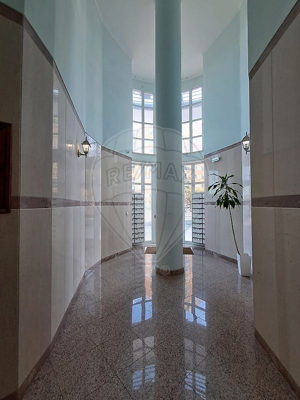 Possui uma área bruta de 102m2, situa-se num 3.º andar de um prédio com dois elevadores em ótimo estado de conservação, com lugar de garagem box e arrecadação.