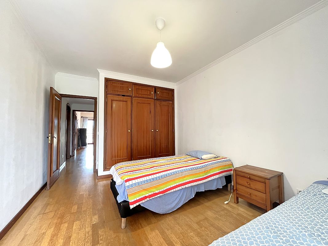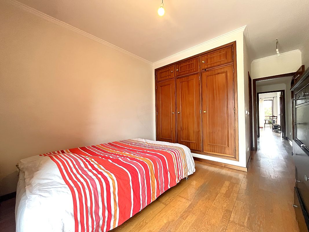 -Quarto com roupeiro embutido e janela de sacada.