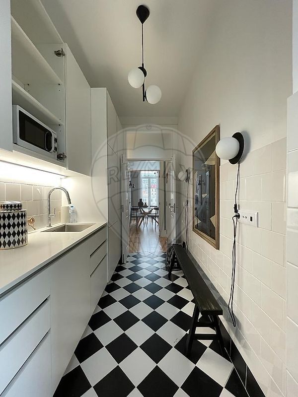 A zona social é composta por uma sala ampla e luminosa, com espaço para área de estar e de refeições, que se prolonga para uma agradável varanda, perfeita para desfrutar de momentos de relaxamento ao final do dia. A cozinha encontra-se totalmente equipada, com um design moderno e funcional, integrando-se harmoniosamente no espaço.
