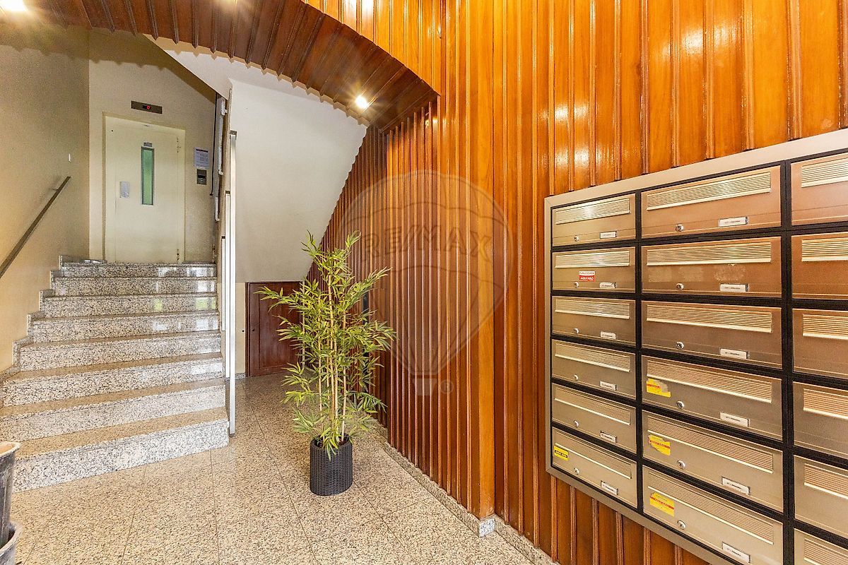 O prédio é servido por dois elevadores e apresenta zonas comuns bem cuidadas.