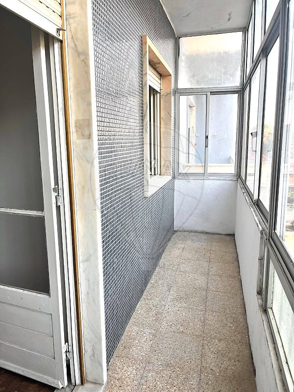 The apartment features a functional and well-balanced layout, comprising an entrance hall with built-in wardrobe, two bedrooms—one of which has access to a spacious balcony—a full bathroom, and a kitchen renovated in the 1990s. The kitchen also includes a pantry and is equipped with a water heater, hob, and extractor fan. There is potential to create an open-plan layout connecting the kitchen to the adjacent living room, enhancing the social area.