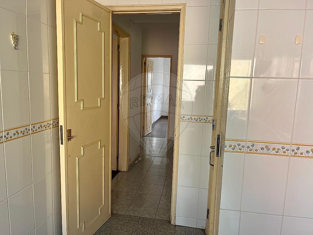 A distribuição do apartamento é funcional e equilibrada, sendo composto por hall de entrada com roupeiro, dois quartos — um deles com acesso a uma varanda ampla —, uma casa de banho completa e uma cozinha com remodelação realizada nos anos 90. A cozinha dispõe ainda de despensa e encontra-se equipada com esquentador, placa e exaustor, existindo a possibilidade de criação de um espaço em openspace com a sala contígua, potenciando a área social.