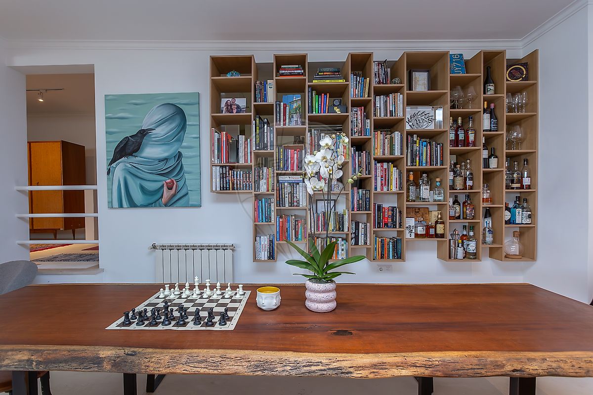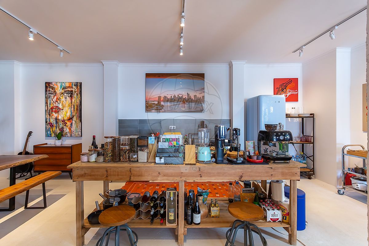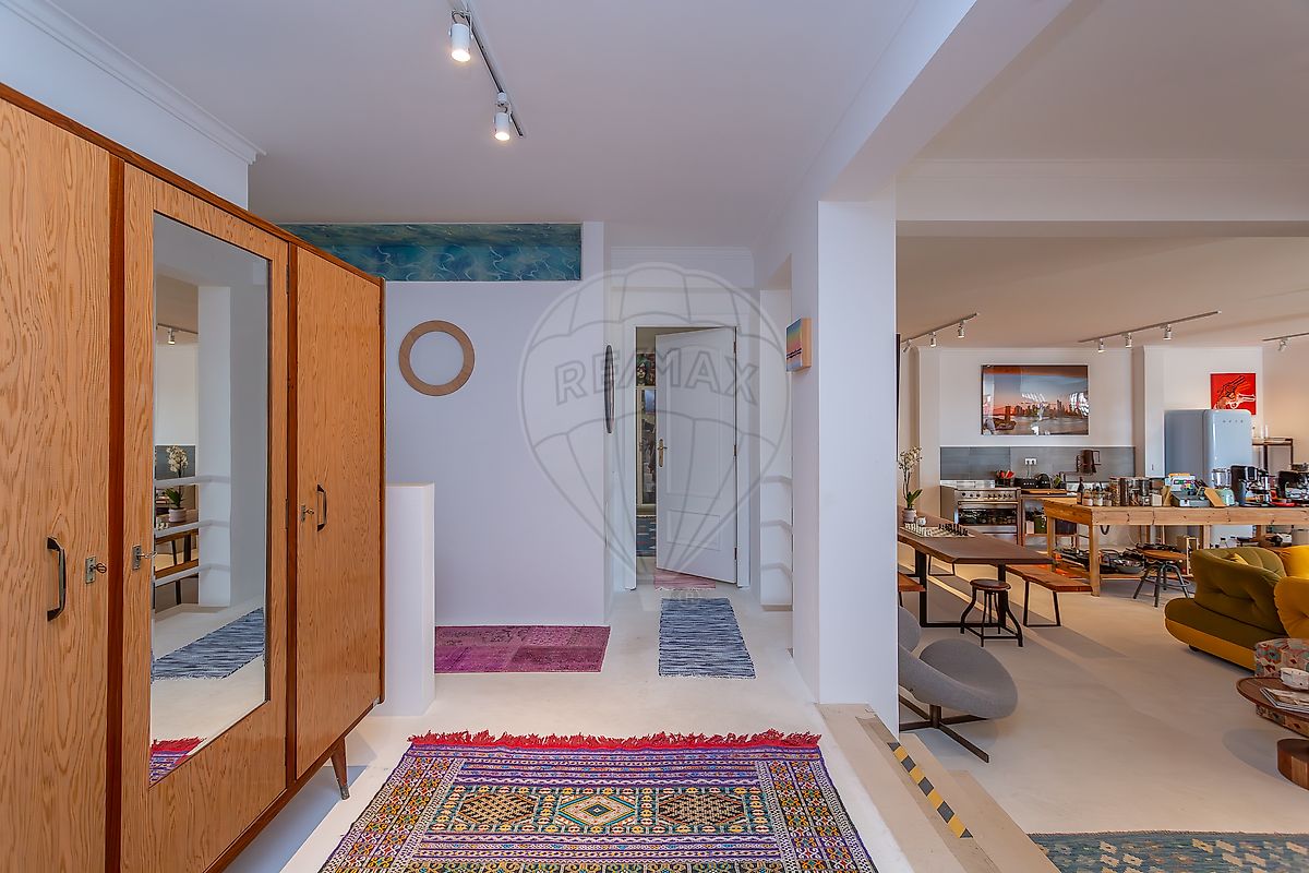 No interior, o loft apresenta volumes generosos, muita luz natural e espaços fluidos, permitindo múltiplas configurações e utilizações. Seja como espaço profissional de alto nível, estúdio criativo, showroom ou loft de uso pessoal, a organização adapta-se ao estilo de vida de quem o ocupa — e não o contrário. A vista de mar a partir de uma das janelas acrescenta um detalhe subtil, mas distintivo, ao dia a dia.