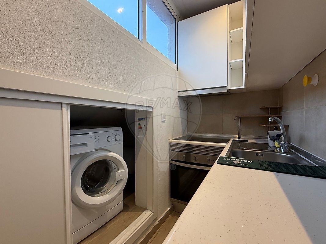 • Kitchenette totalmente equipada, com placa de indução, forno, frigorífico e máquina de lavar roupa