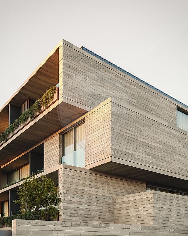Localizado na Avenida Montevideu na Foz junto ao Molhe e com o mar aos seus pés, encontrará o edifício construído em betão armado e revestido a mármore travertino de cor cinza. Emoldurado por amplos envidraçados que oferecem vistas panorâmicas sobre a praia e o mar permitem ver o pôr do sol no oceano.