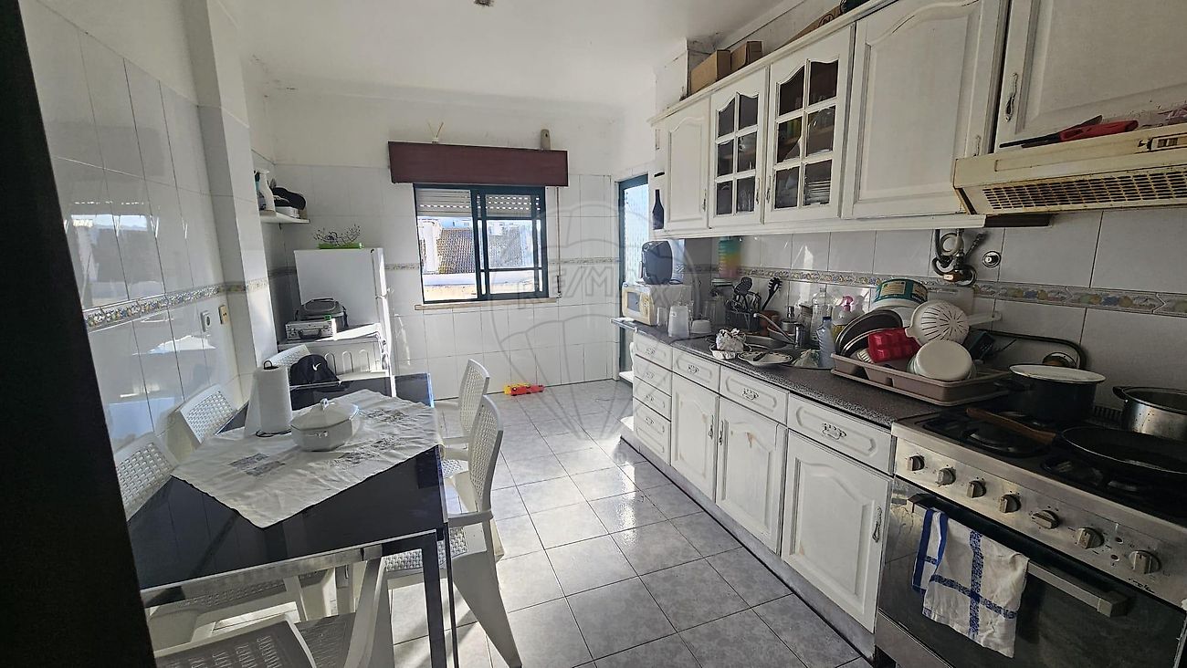 A cozinha encontra-se equipada com fogão, frigorífi co, exaustor e máquina de lavar, permitindo uma utilização imediata do imóvel.