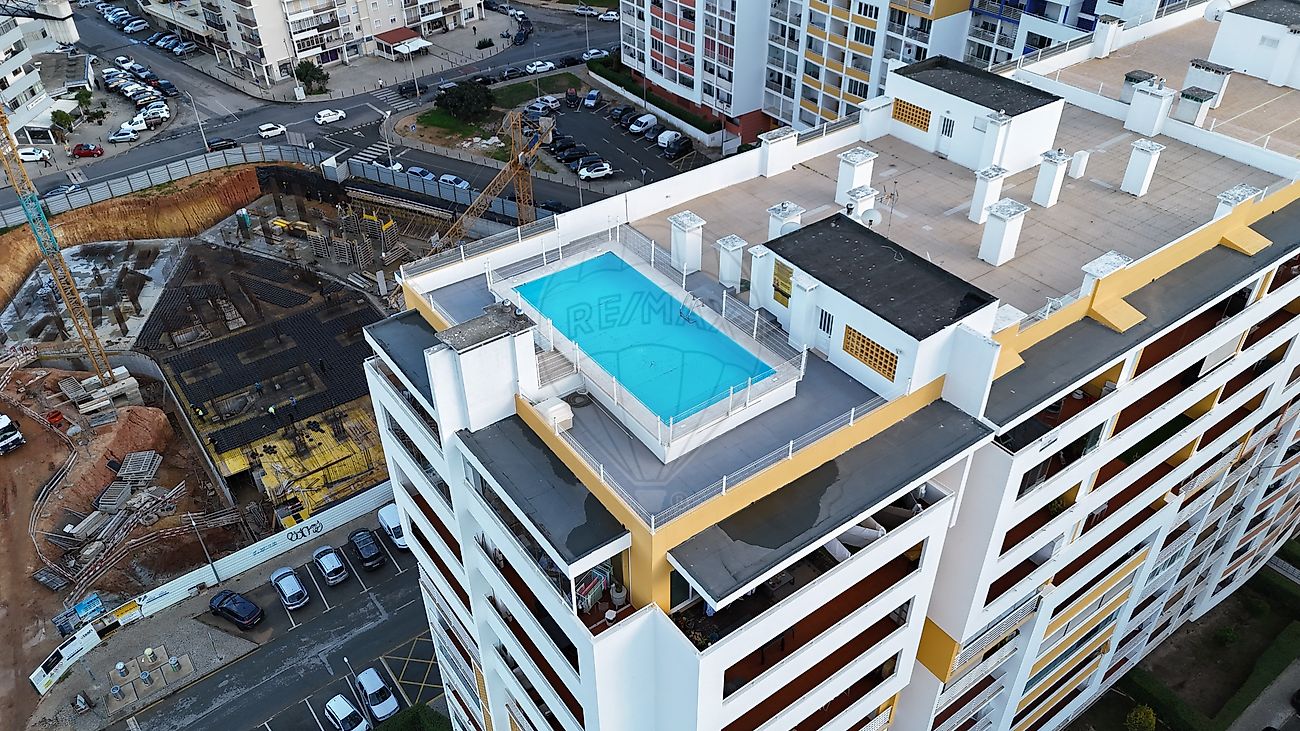 Localizado numa das zonas mais valorizadas e centrais de Portimão, no prestigiado Alto do Pacheco, este apartamento T2 no 9.º andar oferece uma combinação rara de vista desafogada, excelentes áreas exteriores, luminosidade e comodidades premium — incluindo duas piscinas, uma delas no rooftop do edifício.