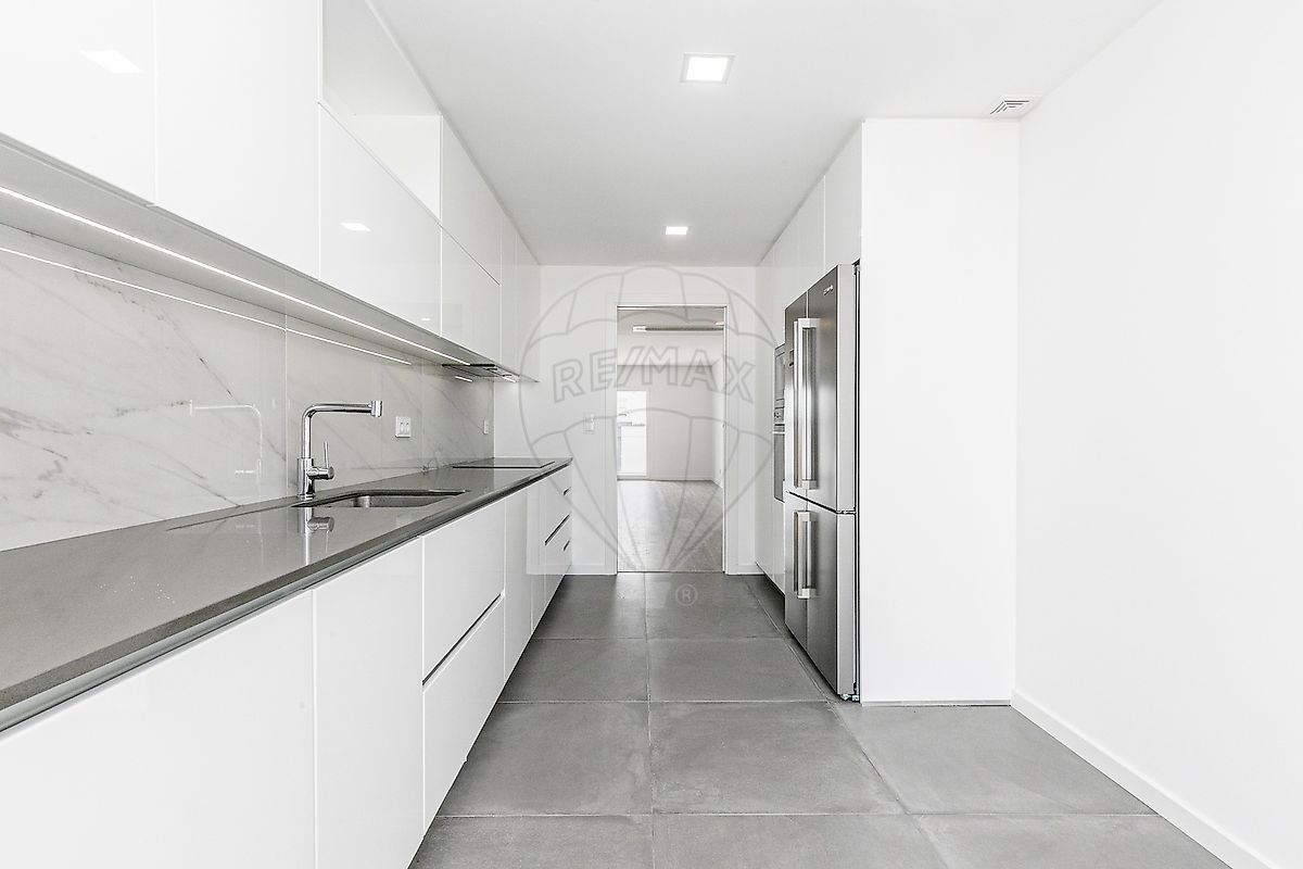 Trata-se de um apartamento com 140 m2, num 4º andar, 2 frentes, varaanda com área de 12 m2, cozinha totalmente equipada com a prestigiada marca SMEG, robótica, ar condicionado em todas as divisões, estores eletricos e 2 garagens em box no piso 0.