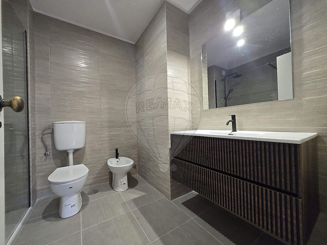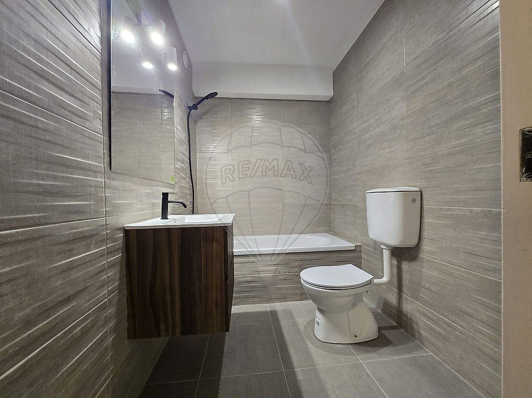 - instalação sanitária com sanita, lavatório com móvel inferior e banheira