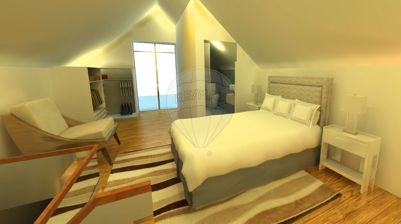 O apartamento é constituído por dois pisos, mais um sótão, sendo o piso 0, composto por uma cozinha, sala comum de refeições e de estar, uma instalação sanitária social e uma escada revestida a madeira para acesso ao primeiro piso; no 1º piso é composto por dois quartos, uma instalação sanitária e escada revestida de madeira para acesso ao sótão; o sótão terá uma suite com closet, instalação sanitária e uma varanda virada a Sul.