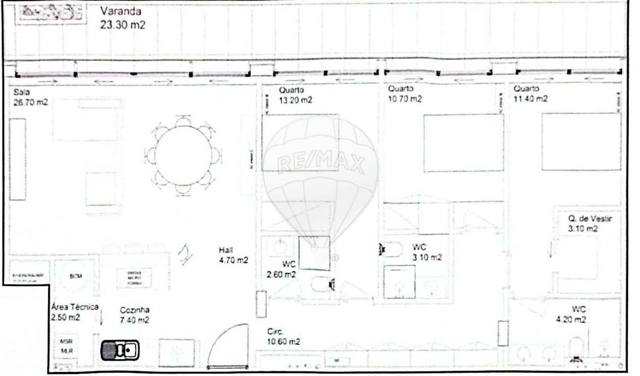 • Varanda espaçosa de 23,30 m², ideal para momentos de lazer e convívio.