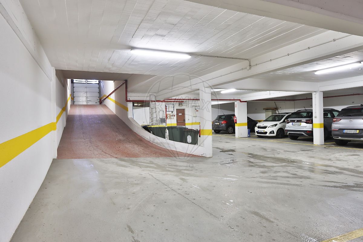 Parqueamento com possibilidade de carregamento de carro elétrico, e arrecadação, a arrecadação tem cerca de 12 m2