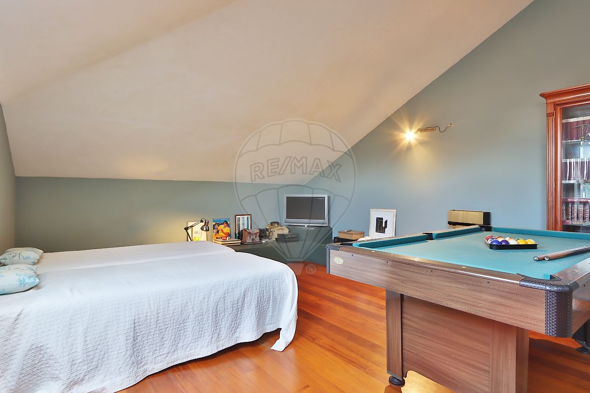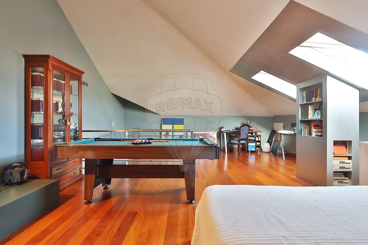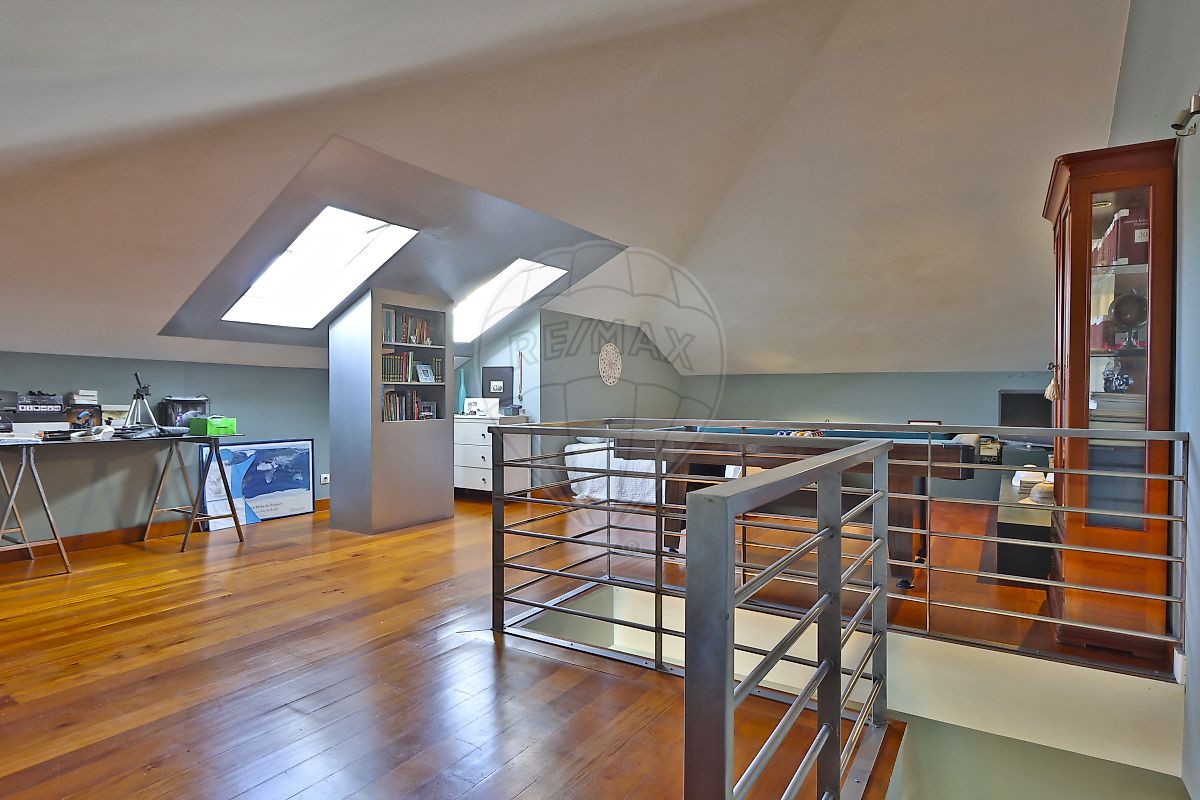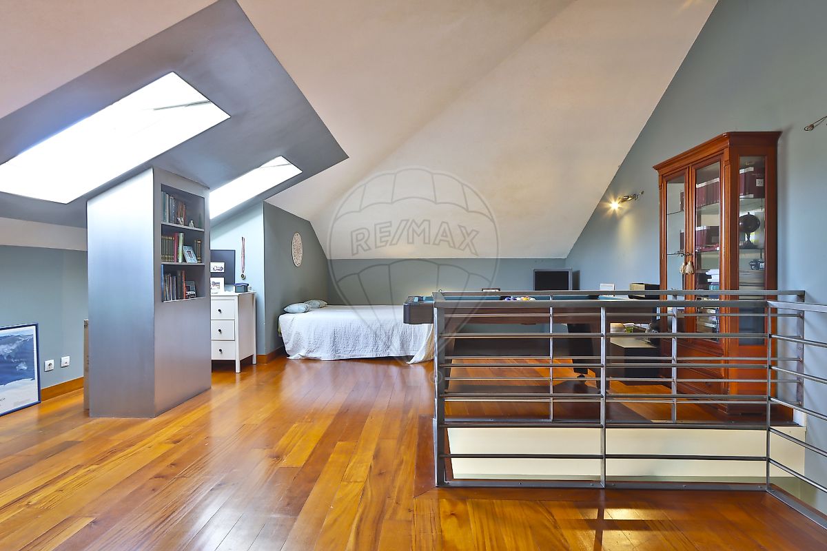 No piso superior, encontra-se uma espaçosa divisão com cerca de 75 m², iluminada por duas janelas Velux, atualmente utilizada como quarto. Este espaço versátil pode facilmente ser transformado em escritório, sala de lazer ou estúdio.