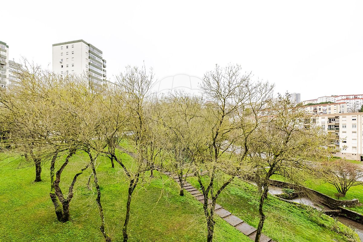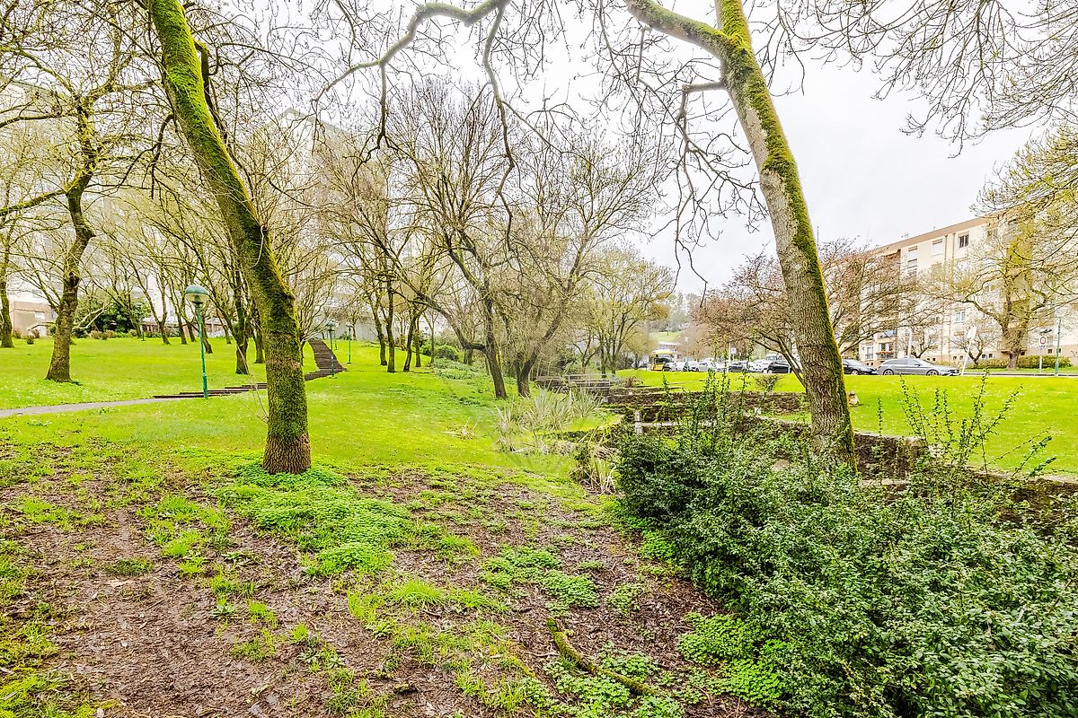 Este T3 conta ainda com uma zona de arrumos/dispensa, todos os quartos, um deles com varandim, orientados para uma moldura verde, o Jardim de Santo António dos Cavaleiros.