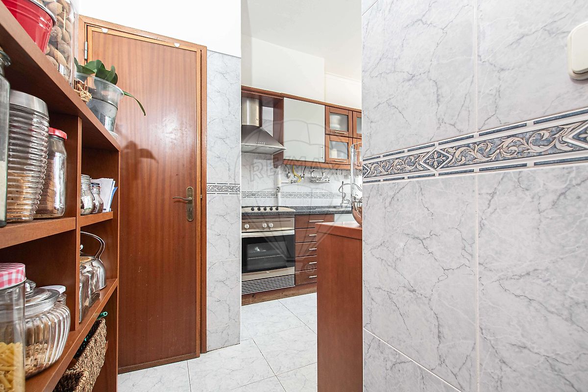 A cozinha encontra-se equipada com placa, forno, exaustor e frigorífico 🍽️, contando ainda com despensa para maior organização. Os quartos têm pavimento flutuante, sendo que um deles é suíte, com casa de banho privativa, e outro dispõe de ar condicionado 🛏️❄️. Existe ainda uma casa de banho social, ambas com base de duche 🚿.