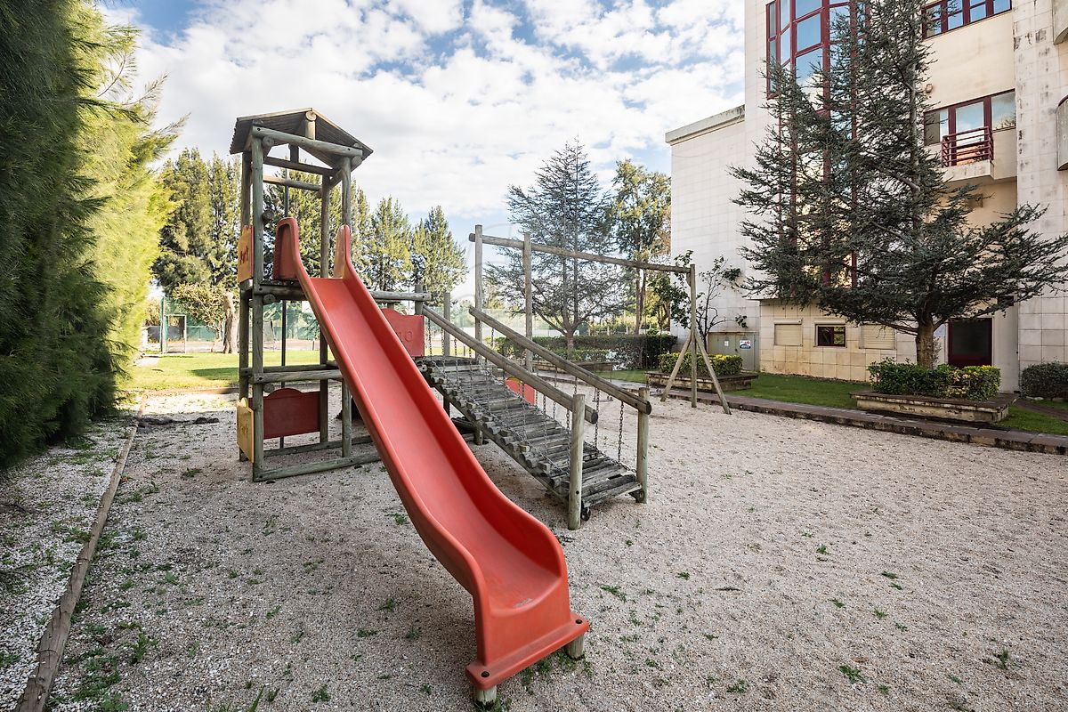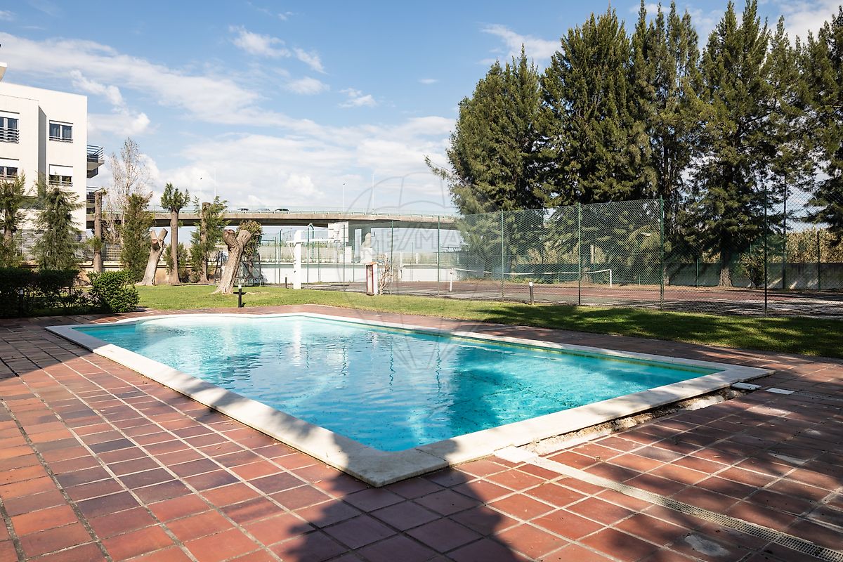 É, no entanto, no exterior da fração que este imóvel ganha verdadeira dimensão. Inserido num condomínio fechado com acesso controlado, oferece um conjunto de infraestruturas difícil de encontrar reunido no mesmo espaço: piscina, campo de ténis, ginásio, sauna, jacuzzi, balneários, sala de jogos, espaços de convívio, zonas verdes, parque infantil e áreas de lazer pensadas para diferentes momentos do dia.