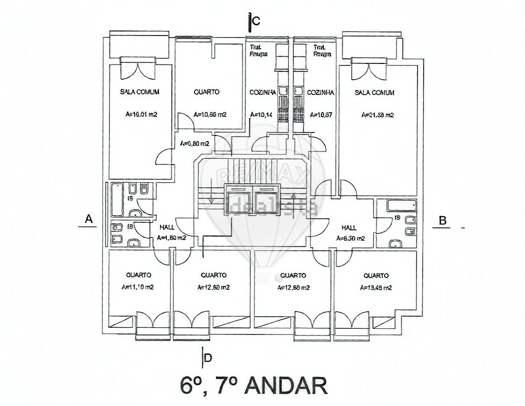 Inserido no 6.º andar de um edifício com elevador.
