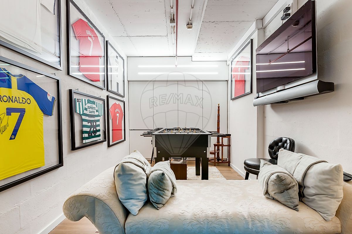 A propriedade inclui ainda uma box independente de 25 m²na cave, inteligentemente transformada numa sala privativa.