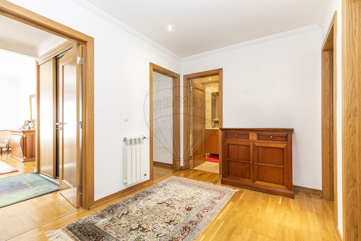 A sua exposição solar nascente/poente permite desfrutar da luz natural durante todo o dia, enquanto contempla a bela vista do rio. Com áreas muito amplas, este apartamento apresenta um layout inteligente com uma divisão clara entre zona social e zona privada, com uma sala de estar espaçosa com vista frontal de rio, uma cozinha totalmente equipada com despensa e casa de banho social. Na área privada encontramos quatro espaçosos quartos, sendo um deles uma suíte com casa de banho privativa. Além disso, há uma casa de banho de apoio aos restantes três quartos no 2º hall da casa com roupeiros embutidos. Os acabamentos de alta qualidade incluem chão de pedra na zona social, aquecimento central, pré-instalação de ar condicionado, som ambiente, vidros duplos e estores elétricos. Este imóvel ainda oferece o luxo de uma box para três carros e uma arrecadação.