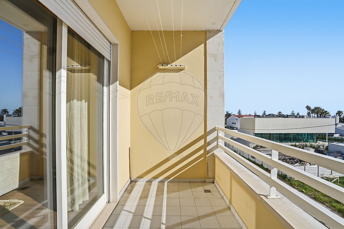 Orientado a sul, beneficia de excelente exposição solar e de uma vista desafogada de mar, que pode ser apreciada através das três varandas.