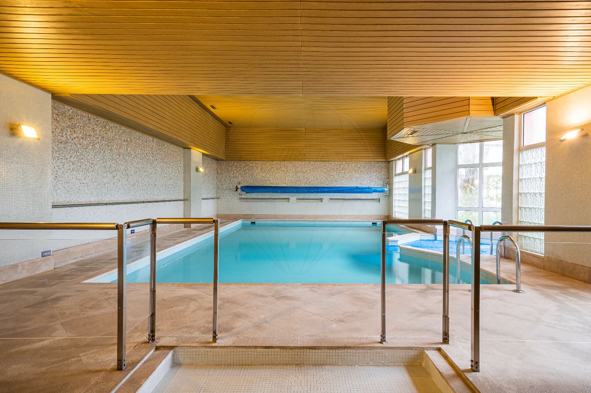 The rooms have solid wood built-in wardrobes and all rooms have large double-glazed windows, providing plenty of natural light and thermal comfort. The apartment also has two parking spaces in an area with easy access to elevators and a storage room. A reference condominium that has a privileged leisure area, the "Condominos Club", which has unique amenities, such as a heated swimming pool with jacuzzi, gym, changing rooms, various rooms, rest areas and a room for meetings / leisure / parties.