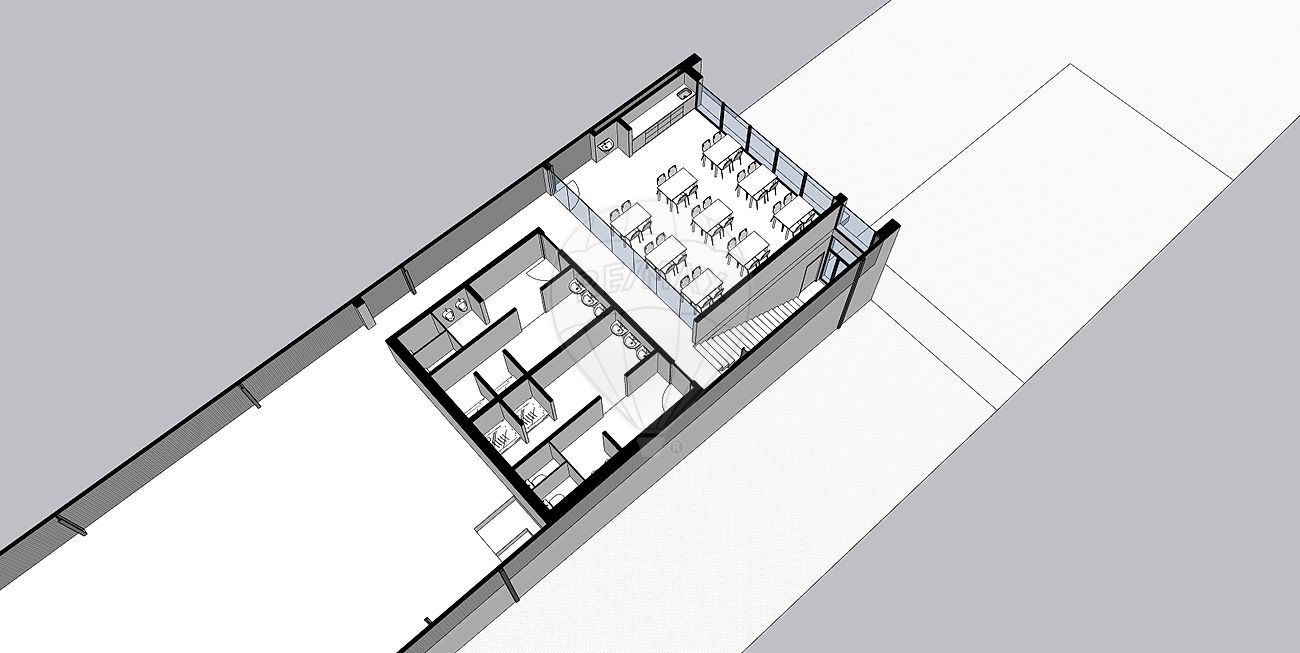 O edifício será composto por dois pisos, sendo comercializado exclusivamente o Rés do Chão e Cave com uma área aproximada de 1.350 m², ideal para atividades de logísticas, armazenagem, distribuição ou serviços.