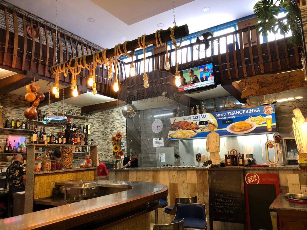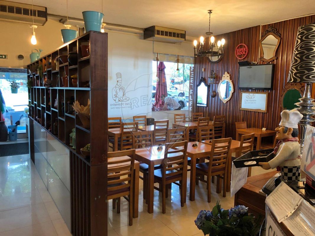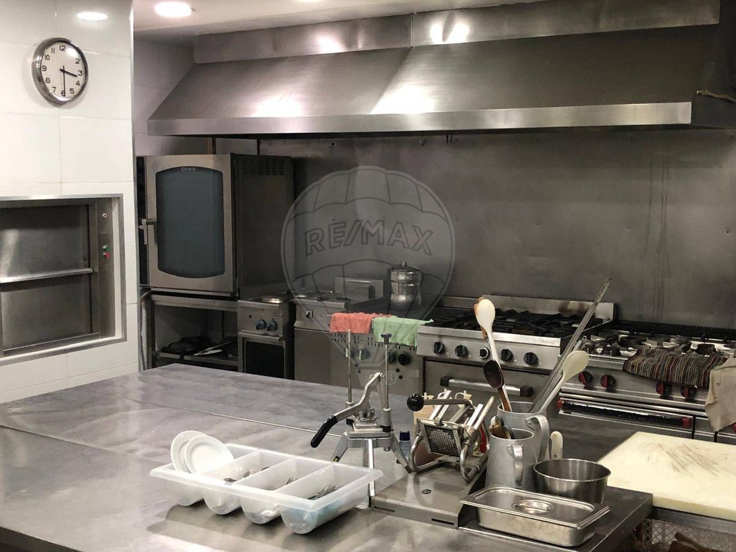 Cozinha profissional, totalmente equipada, zona de bar, esplanada, sala de refeições com elevador de refeições, com decoração acolhedora e capacidade para 220 lugares sentados.