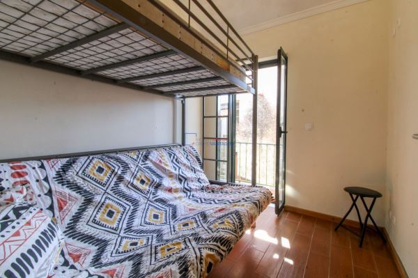Segundo quarto com beliche metálico.