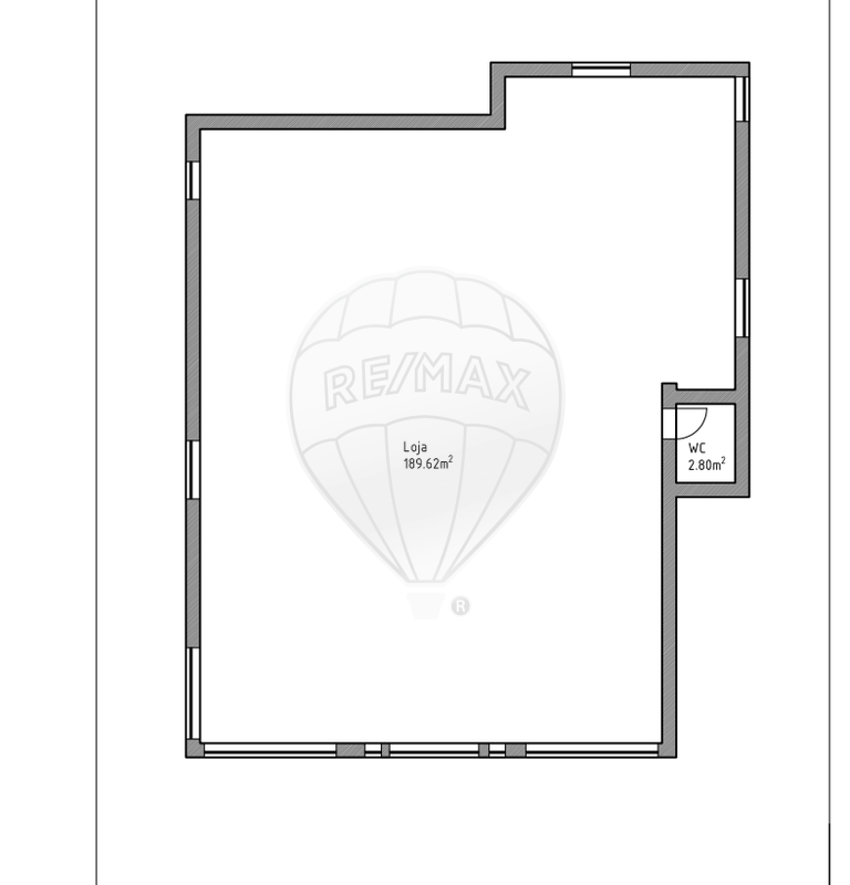 🔹 Rés do chão: espaço amplo com 189,62 m², já com historial de atividade comercial, complementado por casa de banho de serviço.