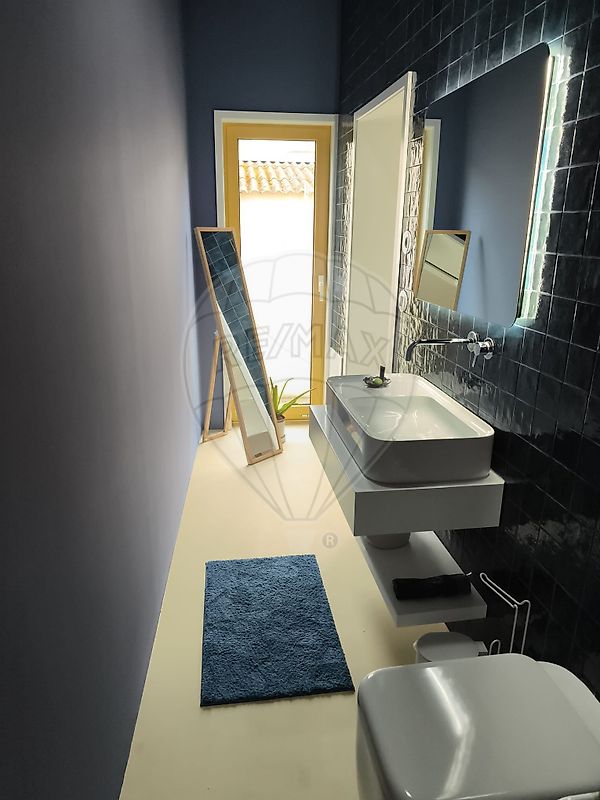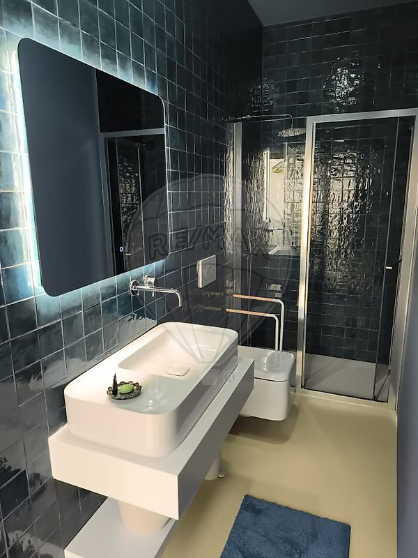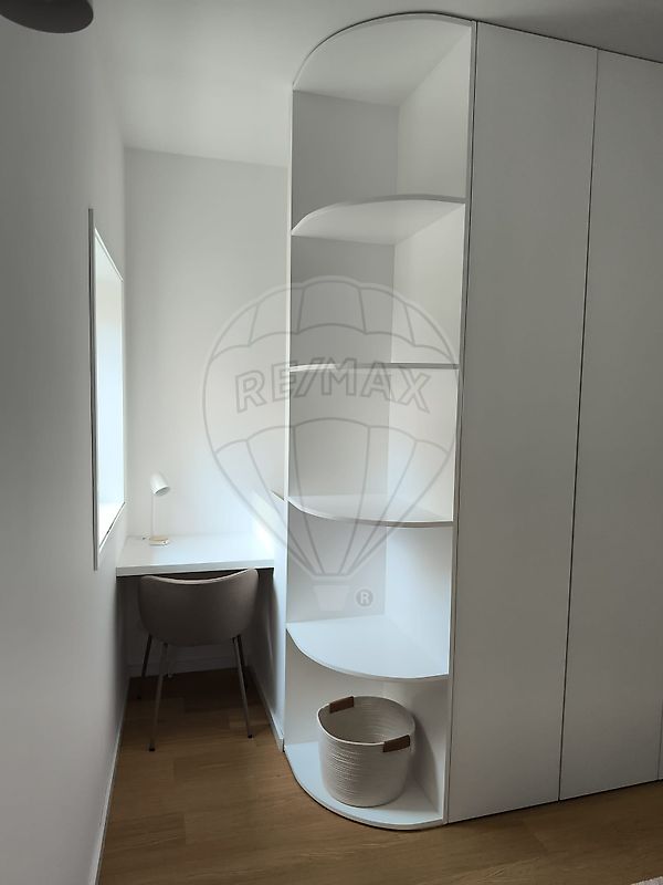 No primeiro piso, situa-se o quarto principal, com boas áreas e excelente aproveitamento de espaço. O quarto integra ainda uma zona de escritório, com secretária e arrumação, criando um pequeno espaço de trabalho funcional dentro do próprio quarto. Neste piso encontra-se também uma casa de banho completa com base de duche.
