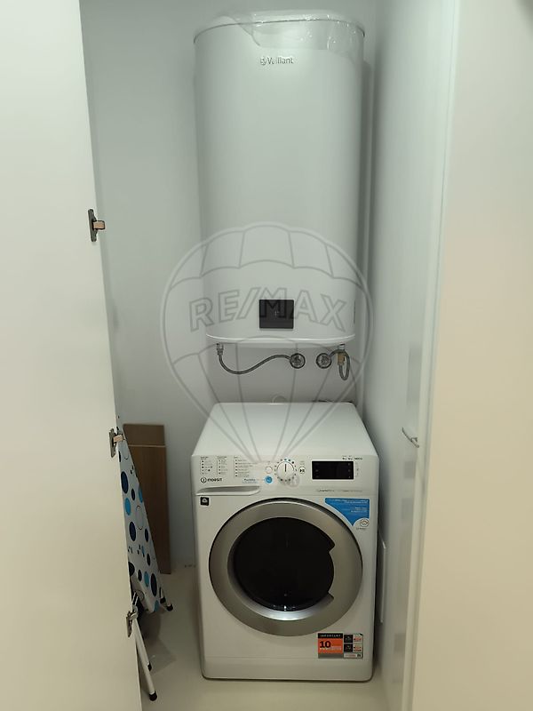 No rés do chão, encontra-se uma sala e cozinha em open space, com bastante arrumação, proporcionando um ambiente moderno e prático. Neste piso dispõe ainda de uma casa de banho de serviço e uma zona de lavandaria, preparada para máquinas.