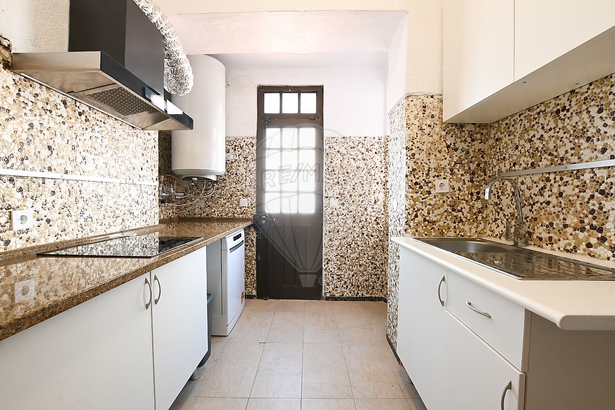 Cozinha renovada e equipada com acesso ao terraço e jardim