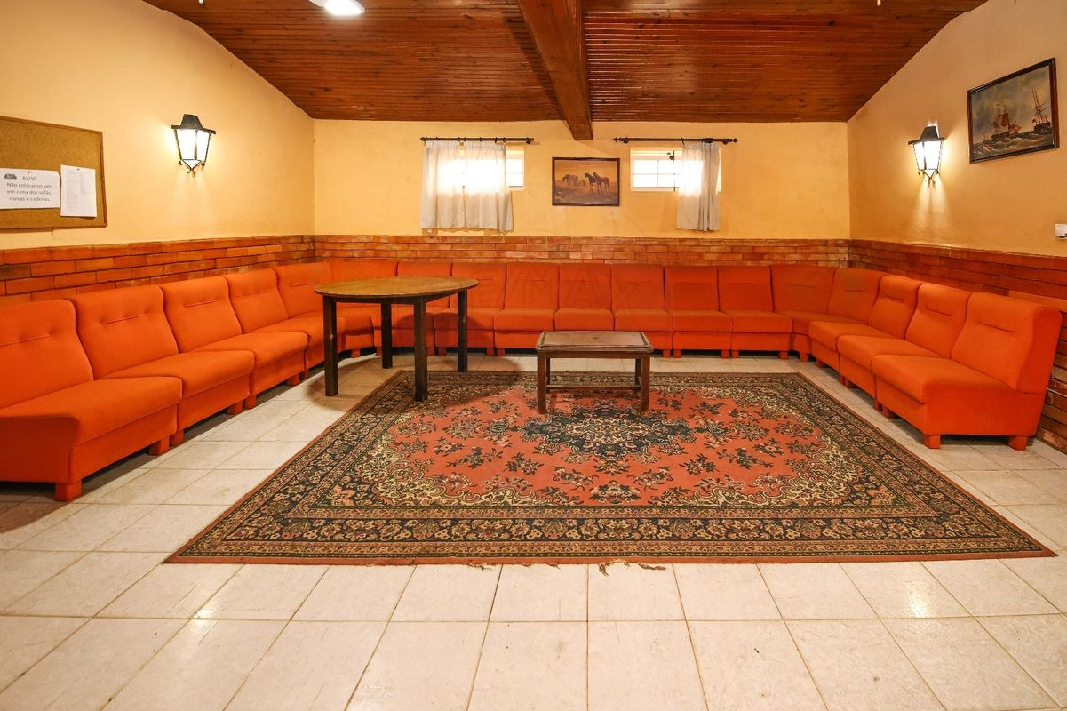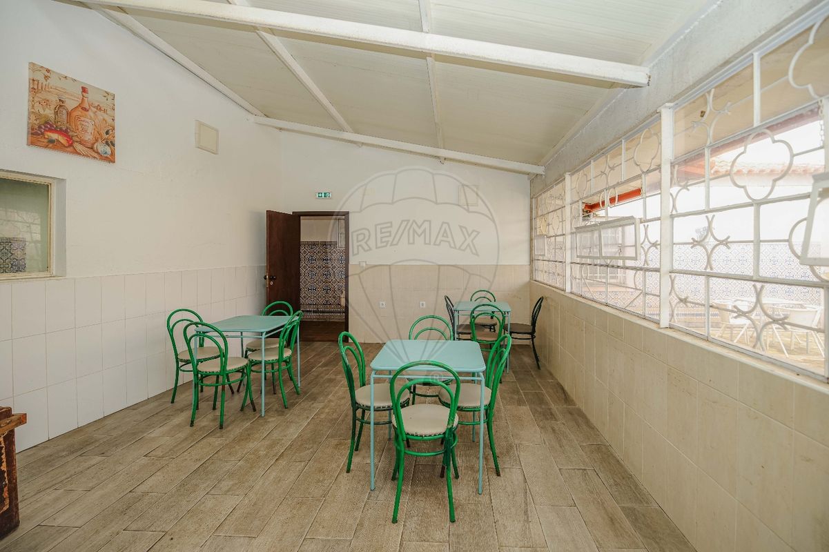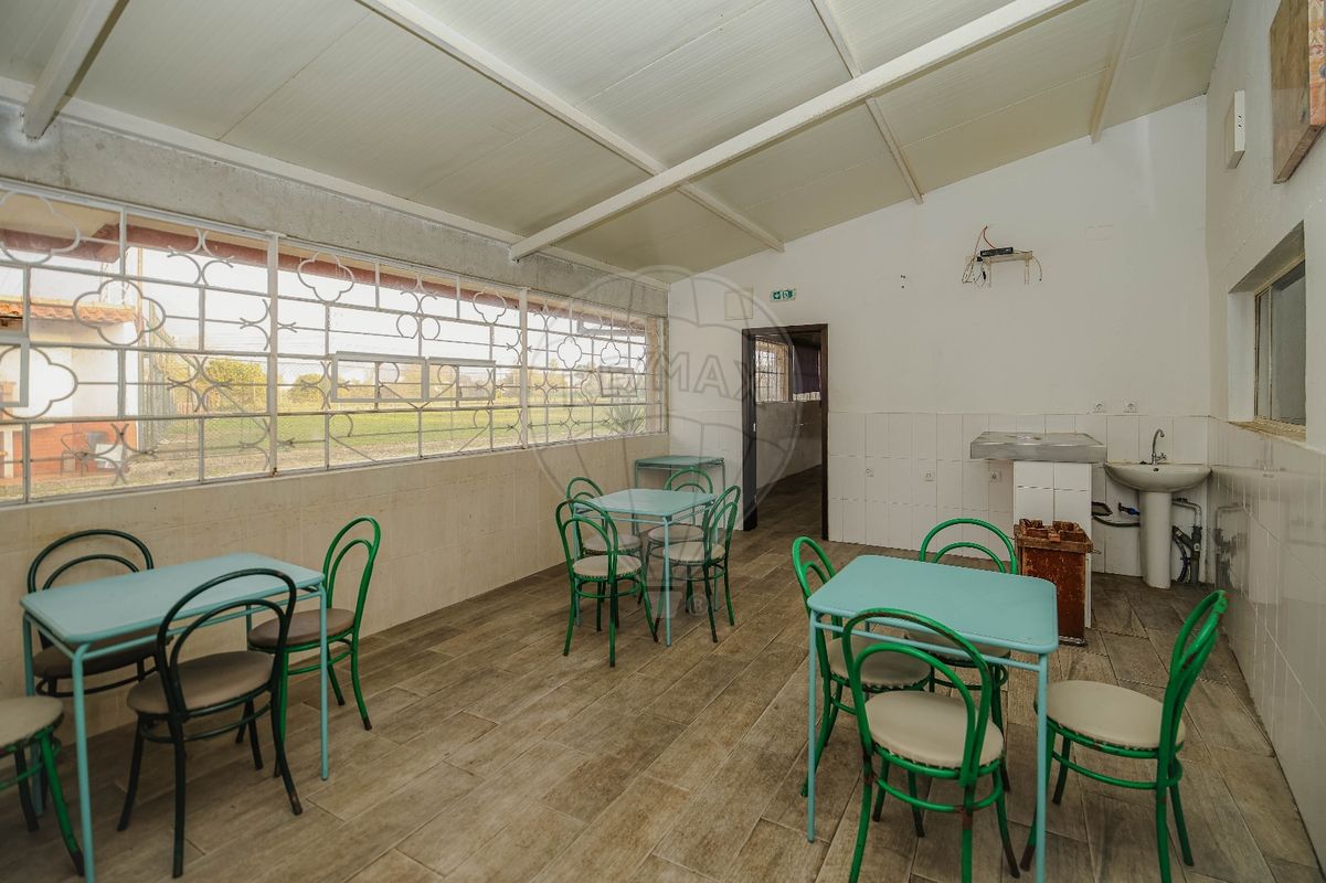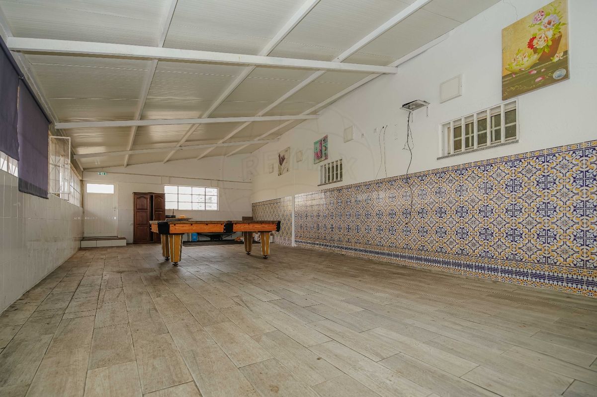 Uma zona de Cafetaria e balcão de inox, com mesas e cadeira de bar junto a um enorme Salão equipado com bilhar de snooker, que poderá ser usado para grandes eventos.