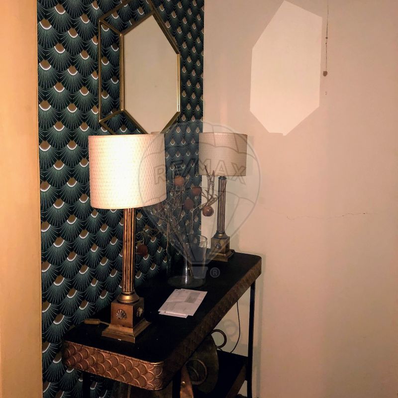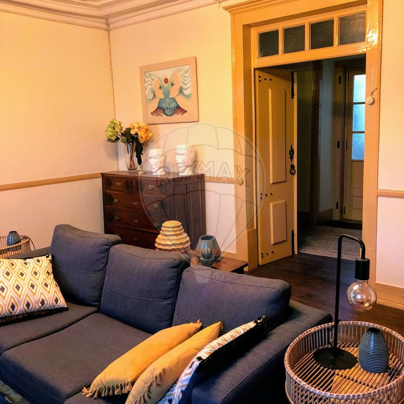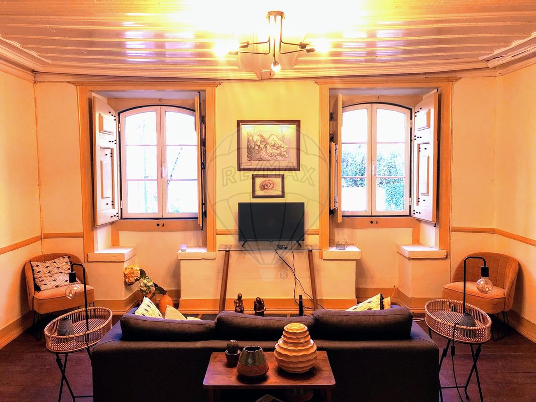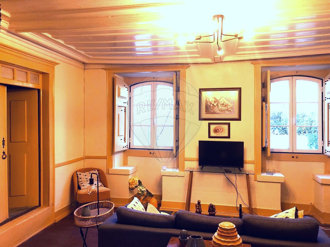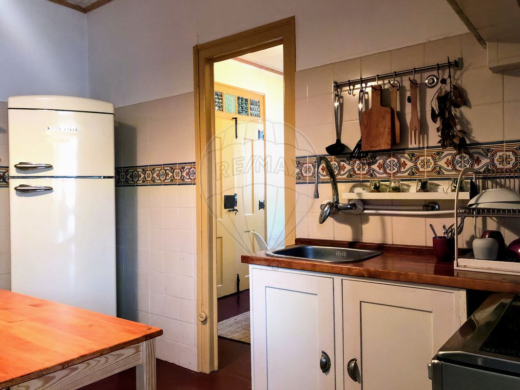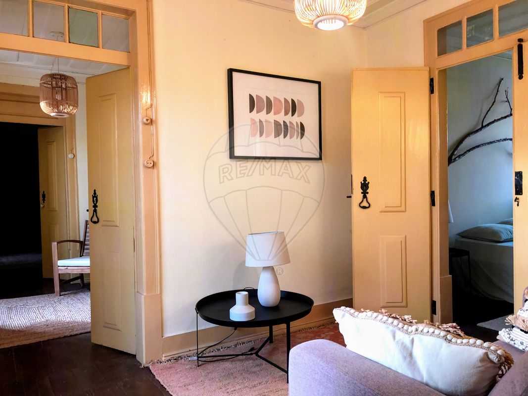 Com uma sala, dois quartos (possibilidade de mais um quarto) e sala de refeições. A cozinha encontra-se virada para o quintal, com um pequeno alpendre de acesso às escadas e uma pequena saleta, no acesso ao corredor. Quarto de banho com janela e vista para o terraço e para a parte posterior do quintal. Chão de madeira, em soalho. Tetos em madeira, originais. Portadas e portas interiores originais, recuperadas recentemente. Cozinha equipada com fogão, forno, frigorífico, micro-ondas e máquina de café. Equipada com cilindro para água quente.