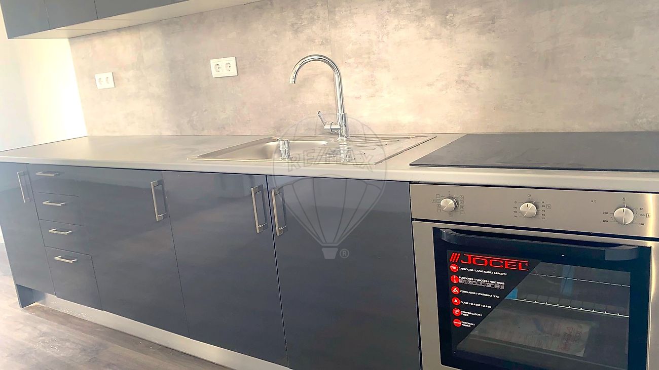 A cozinha encontra-se equipada com placa, forno e exaustor.
