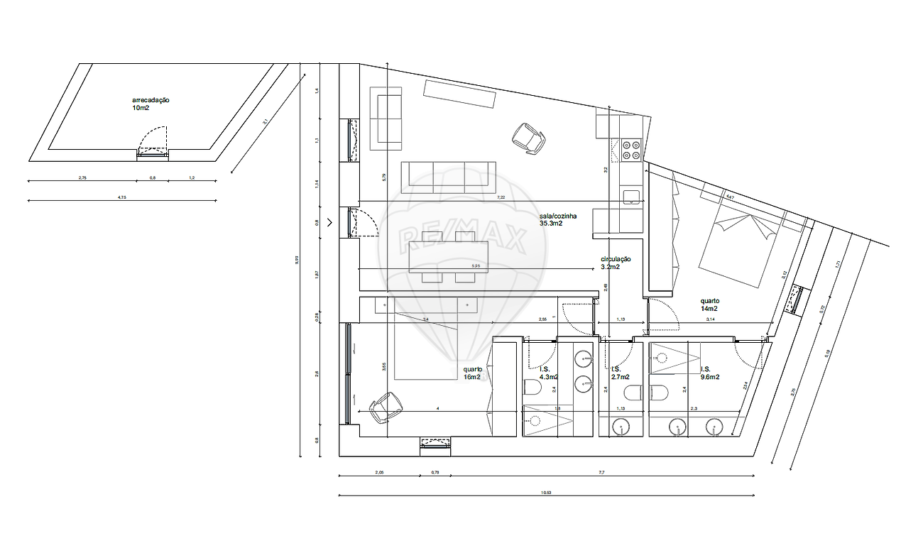 Conta com dois quartos em suite, ambos com roupeiros embutidos, garantindo privacidade e organização. Inclui ainda um WC social de apoio às áreas comuns.